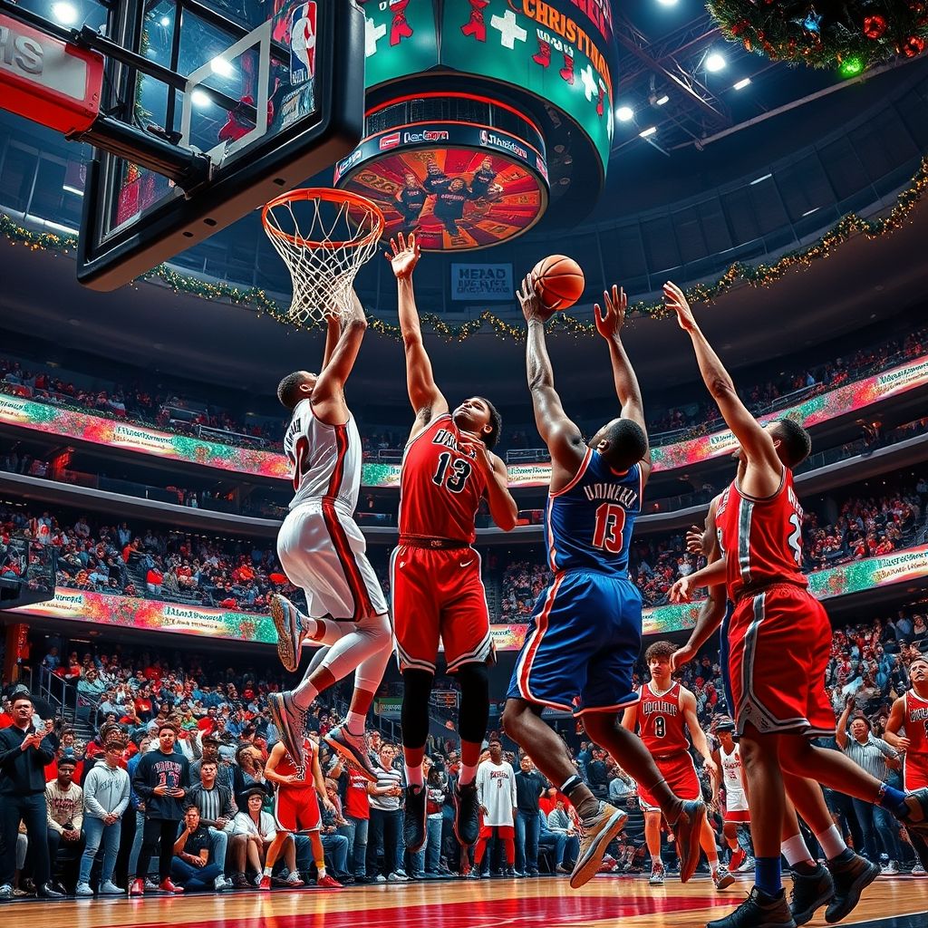 在每年的12月25,世界各地的篮球迷都在期待一场特殊的盛事——NBA圣诞大战。这不仅是一场普通的篮球比赛,更像是一场全球性的体育狂欢,代表着联盟顶尖球员的巅峰对决,以及各队激烈的角逐。这一天,NBA的舞台变得格外耀眼,明星云集,精彩瞬间层出不穷,无论是球场上的精彩配合,还是场外的热烈气氛,都令人沉醉其中。